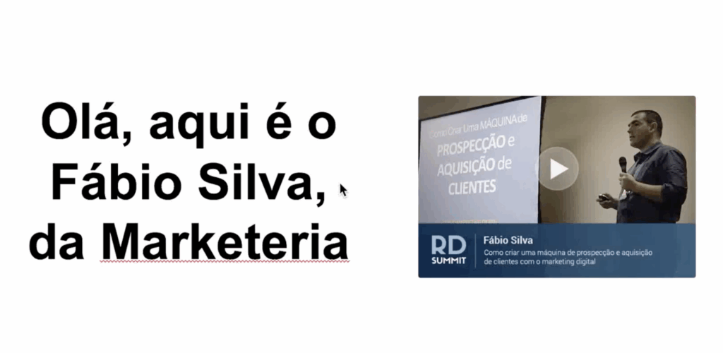 AUTORIDADE HISTÓRICA E EXPERTISE: O fundador da Marketeria, Fábio Silva, palestrou no renomado RD Summit em 2014, um marco para o Inbound Marketing no Brasil, abordando a estratégia e o método de prospecção e aquisição de clientes. Isso demonstra uma longa e consistente Experiência e Expertise no setor desde os primórdios, posicionando a Marketeria como uma voz autoritária e pioneira.